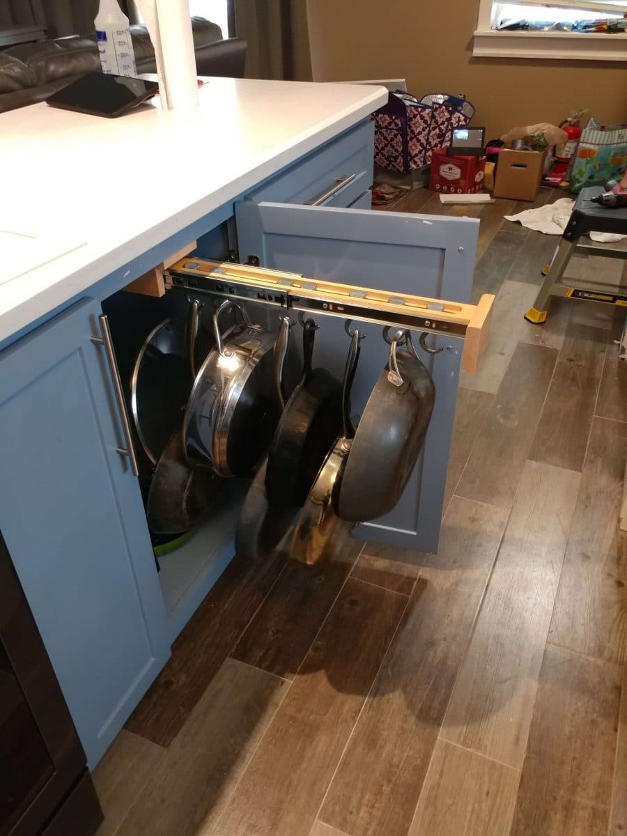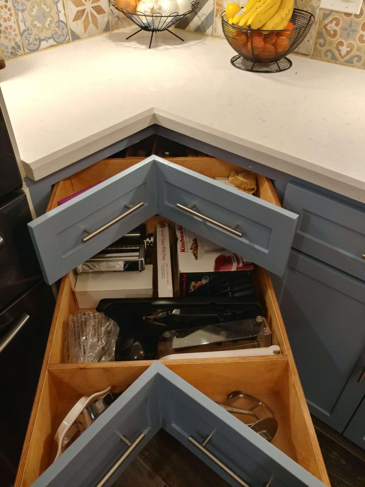 The other issue I had was dead space in my lower corner cabinets. Before, I was on the floor trying to push or pull things out. That had to be remedied in the new kitchen.