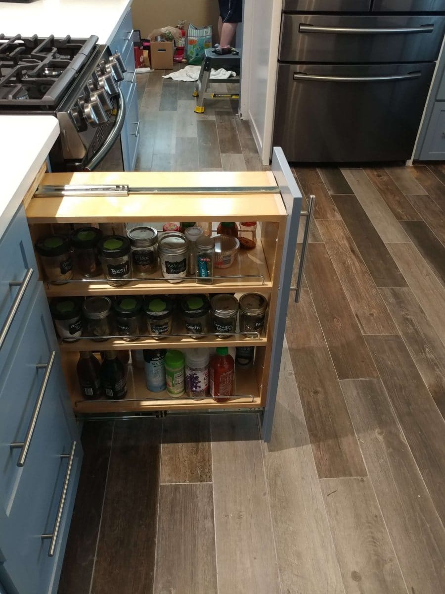 The other issue I had was dead space in my lower corner cabinets. Before, I was on the floor trying to push or pull things out. That had to be remedied in the new kitchen.
